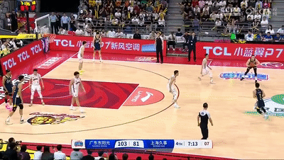 第三节广东上海都没抢下开局,二飞篮下犯规大王吃到违体,换回杜润旺祭出4锋1卫!杜锋也再度展示了他的实力,广东单节飚进7记三分,而正在吉伦低迷阶段,